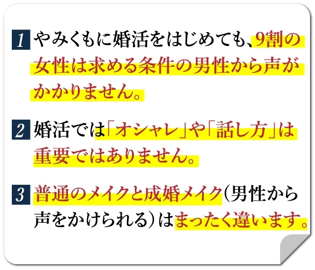 顔に自信がないのですが、メイクだけで成婚に結びつくのでしょうか?